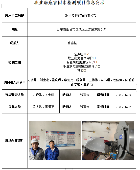 烟台雷彩工具制造有限公司2025年度职业病危害现状评价